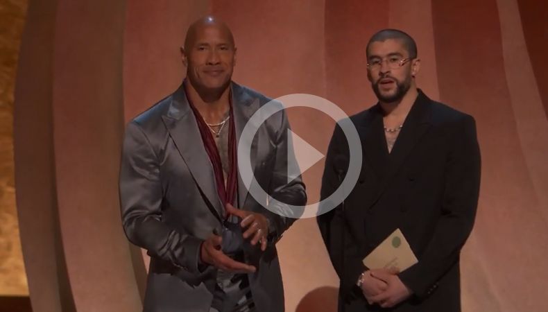 El intérprete de “Titi me preguntó”, llegó al escenario con el actor Dwayne Johnson, mejor conocido como “La Roca”. Hablando completamente en español, cantante presentó la categoría “Mejor película internacional”.
