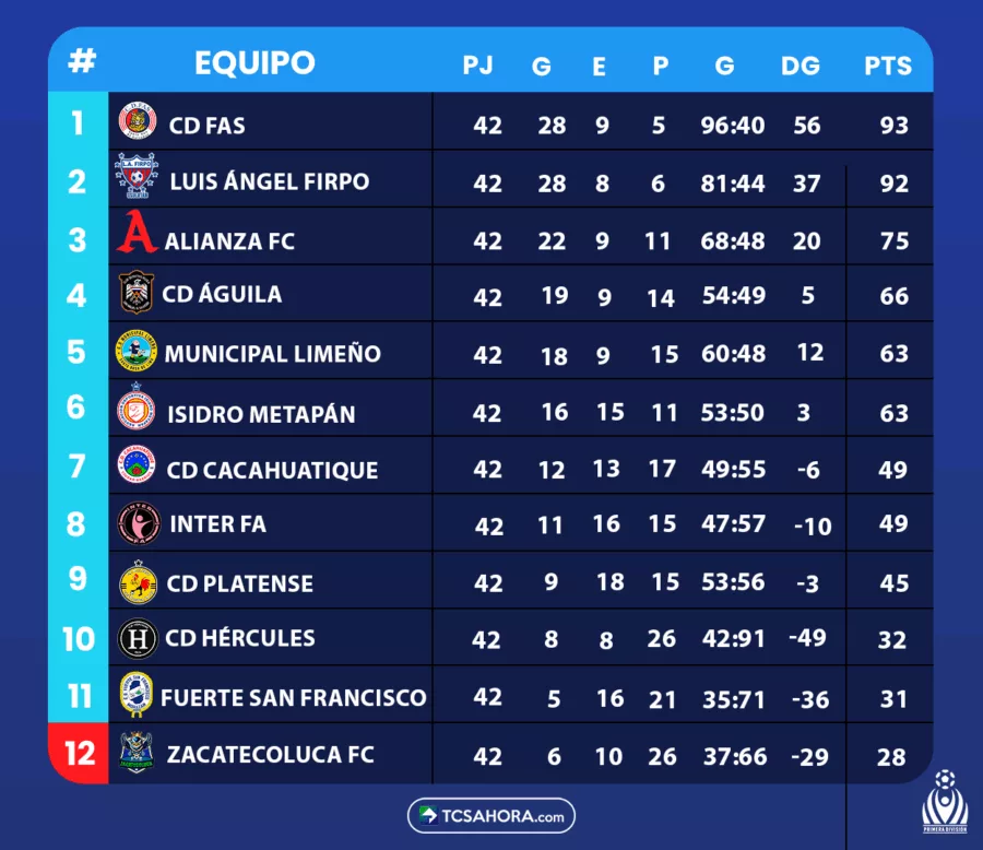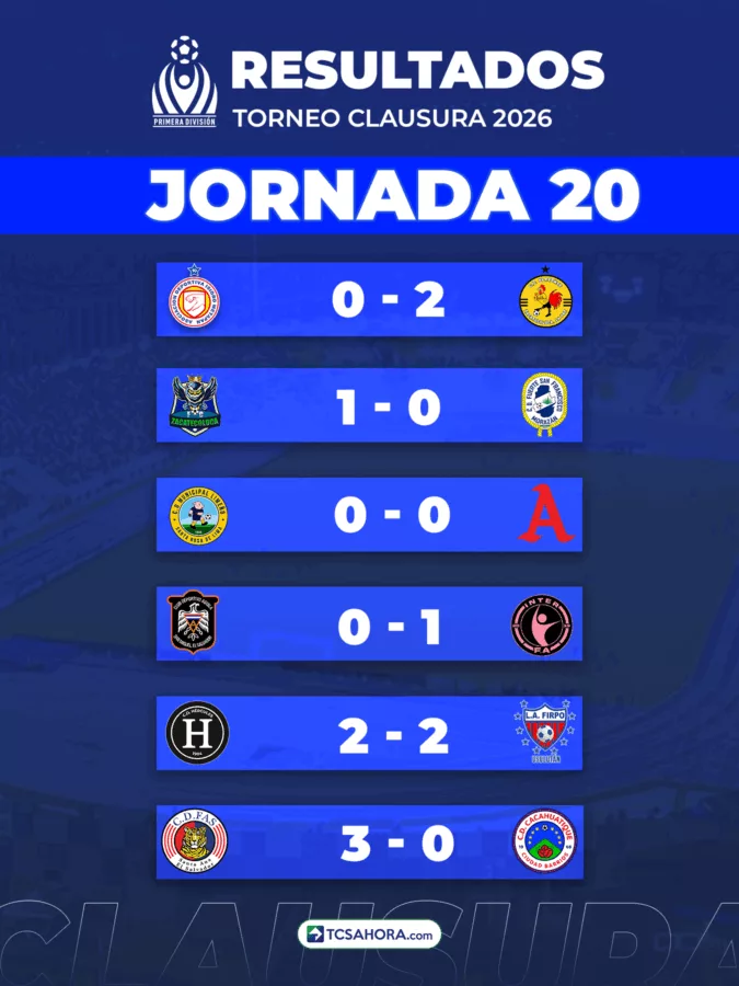 Club Deportivo FAS se aseguró ser líder de la competencia al vencer por goleada a CD Cacahuatique. Mientras que, Zacatecoluca se aferra a la salvación en la jornada 20 del Torneo Clausura 2026.