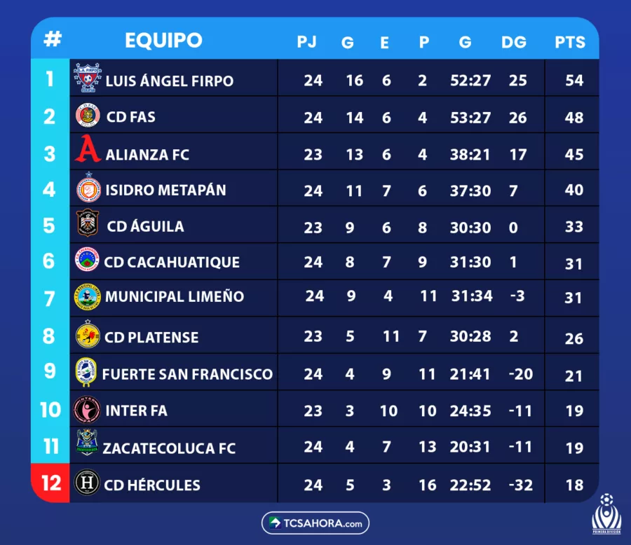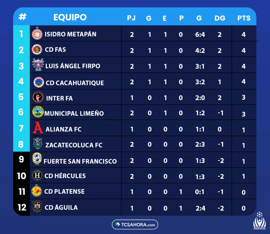 Isidro Metapán es el nuevo líder, por diferencia de goles. Mientras que, CD FAS logró su primer triunfo en la segunda jornada del Torneo Clausura 2026.