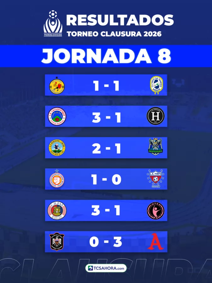 Club Deportivo FAS es el nuevo líder de manera solitaria tras vencer a Inter FA en la octava jornada del Torneo Clausura 2026, mientras que, Firpo perdió el invicto en el Jorge Suarez Landaverde.