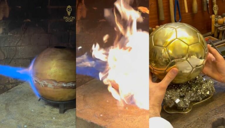 El clip muestra al escultor fabricando el premio que otorga anualmente la revista France Football. Antes de ser ensamblado, la distinción pasar por un trabajo de serigrafía para personalizarlo de acuerdo con la edición.