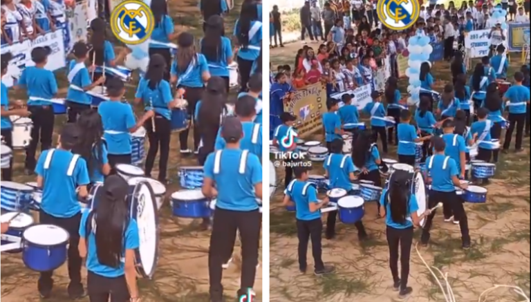 Es por eso que estos pequeños aprovecharon el día de la independencia para tocar con sus instrumentos el himno del Real Madrid.