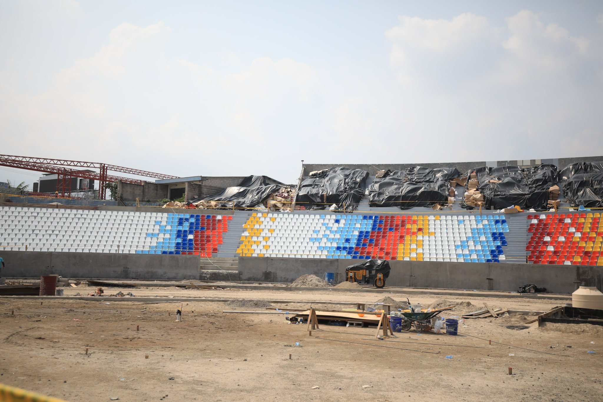 Entre las imágenes se aprecia las butacas ya colocadas en buena parte del escenario deportivo, que está en remodelación para las futuras competiciones que se darán en El Salvador; entre las que destacan, los Juegos Centroamericanos y del Caribe, San Salvador 2023.