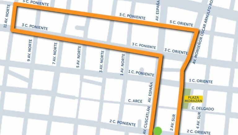 El trayecto de los atletas iniciará en la Plaza Gerardo Barrios, extendiéndose por la avenida Monseñor Óscar Arnulfo Romero hasta la 5 calle Oriente, pasando por la 11 Avenida Norte, luego por la 3 calle Poniente y finalizando por las avenidas España y Cuscatlán, hasta llegar al Palacio Nacional.