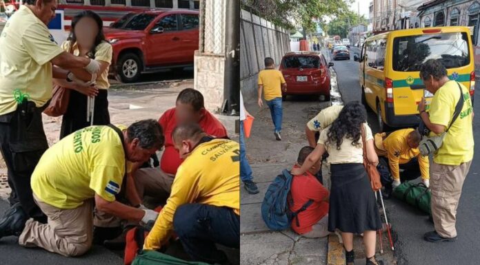 Comandos de Salvamento informó que dos personas con discapacidad visual fueron atropelladas por un vehículo. El hecho fue registrado en la 11 calle poniente y Avenida España, en San Salvador.