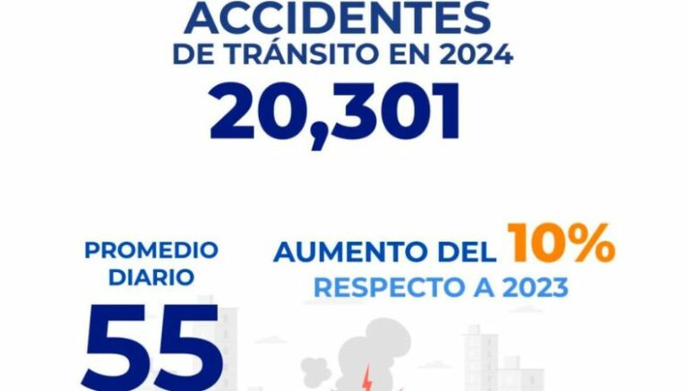 Los datos estadísticos reflejan un aumento del 10% en comparación al mismo período de 2023, cuando se reportaron 18,463 es decir, 50 al día. Esto refleja una variación de 1,838 accidentes.