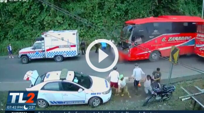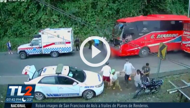 Un bus arrolló a un grupo de personas, incluyendo paramédicos, que se encontraban en la vía Santo Domingo, Quinindé, Esmeraldas, Ecuador, la mañana de este lunes, 3 de junio.