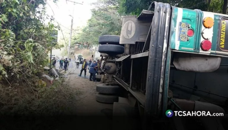 Un accidente de tránsito se registró esta tarde en la carretera a Comasagua entre un vehículo particular y un autobús de la ruta 673. El impacto provocó que ambos automotores volcaran.