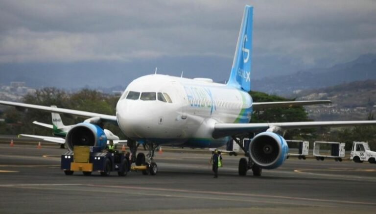 El vuelo de la aerolínea GlobalX, procedente de San Diego, California, arribó a una base junto al aeropuerto internacional Juan Santamaría. 20 kilómetros al noroeste de San José, la capital costarricense.