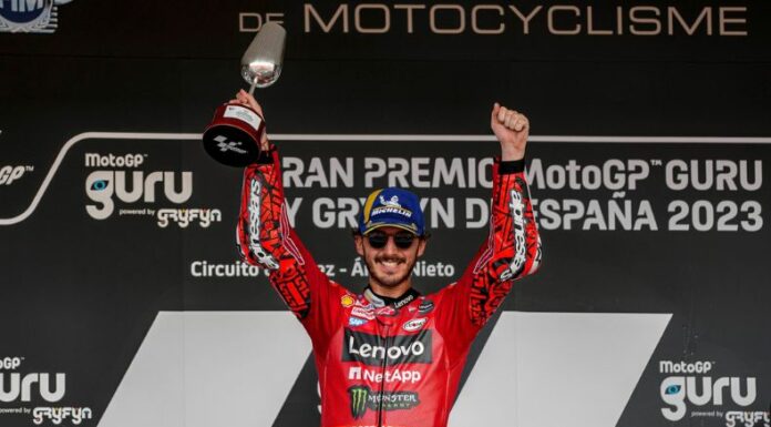 Francesco Bagnaia, Ducanti, se agenció con el GP de Jerez en una carrera emocionante y que se definió hasta la última curva. El podio lo completaron dos pilotos de Red Bull; Brad Binder en el segundo lugar y Jack Miller en el tercero.