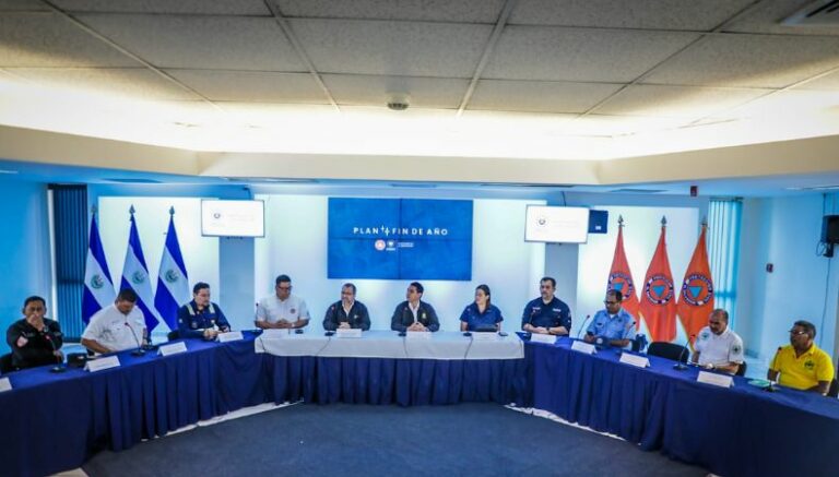 El director de Protección Civil, Luis Amaya, el director del Cuerpo de Bomberos, Baltazar Solano, el Gobernador de San Salvador, Eduardo Godoy, y funcionarios que integran el Sistema Nacional, brindaron en conferencia de prensa el balance final de las emergencias atendidas en el Plan Fin de Año 2023.