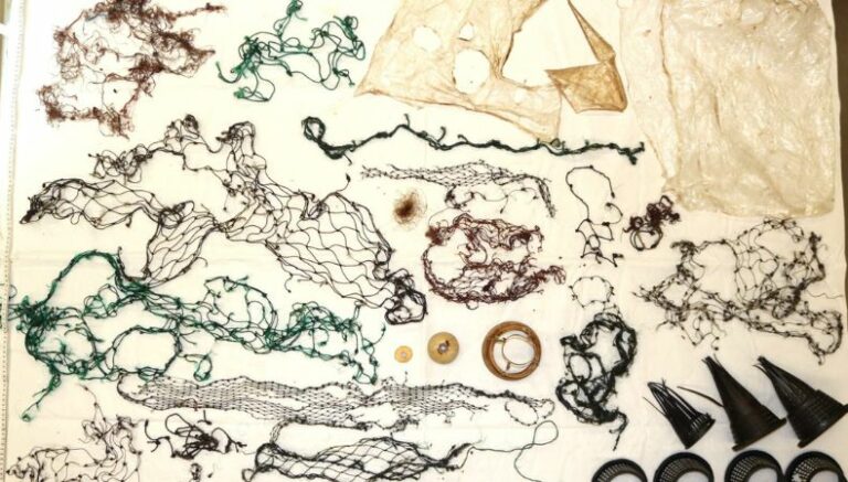 «Además de picos de calamar, esqueletos de peces y otros restos de presas, encontramos al menos seis trampas para el pez bruja y también encontramos cantidades significativas de al menos siete tipos de redes de pesca, al menos dos tipos de bolsas de plástico, un protector de luz, línea de pesca y un flotador de una red.», mencionó.