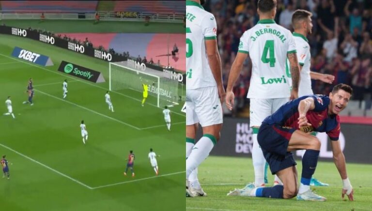 Fue a los 19 minutos, cuando Soria no pudo quedarse con el balón tras un centro envenenado de Jules Koundé sobre la derecha. Su rechace cayó hacia donde se encontraba Robert Lewandowski y el polaco definió sin problemas.