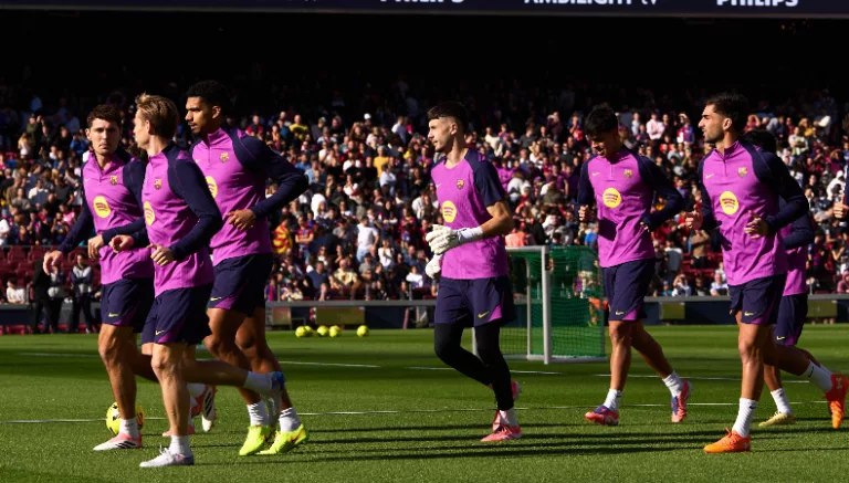 El público dedicó varios cánticos a los jugadores, especialmente para el portero Joan Garcia, aún en proceso de recuperación de su lesión de rodilla y que volvió a ejercitarse con el grupo y a buen ritmo, y sobre todo para Lamine Yamal, el nuevo ídolo de la afición blaugrana, que tan solo había jugado 7 minutos en el anterior feudo.