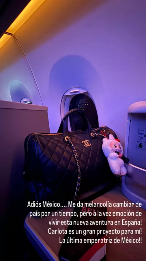 Sobre la foto, la cantante escribió: “Adiós, México… Me da melancolía cambiar de país por un tiempo, pero a la vez emoción de vivir esta nueva aventura en España. ¡Carlota es un gran proyecto para mí! ¡La última emperatriz de México!”.