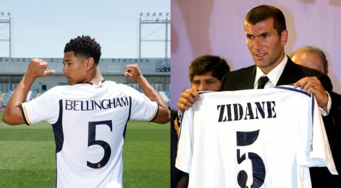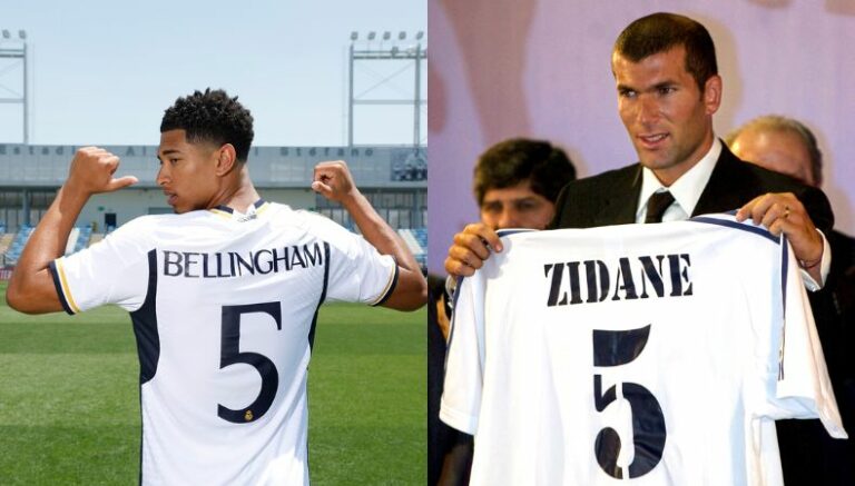 En un acto conmemorativo celebrado en Ciudad Real Madrid, el club merengue presentó a su más reciente fichaje, Jude Bellingham. El centrocampista tendrá la honra, y el peso, de vestir con el dorsal «5» durante esta temporada. Número que fue parte de la camiseta de Zinedine Zidane en su etapa como futbolista de la institución.