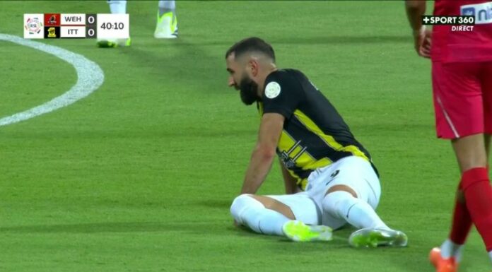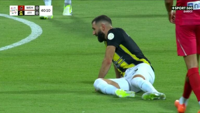 Durante la primera parte, Karim Benzema tuvo que abandonar el partido entre Al-Ittihad y Al-Wahda por una lesión en una de sus extremidades.
