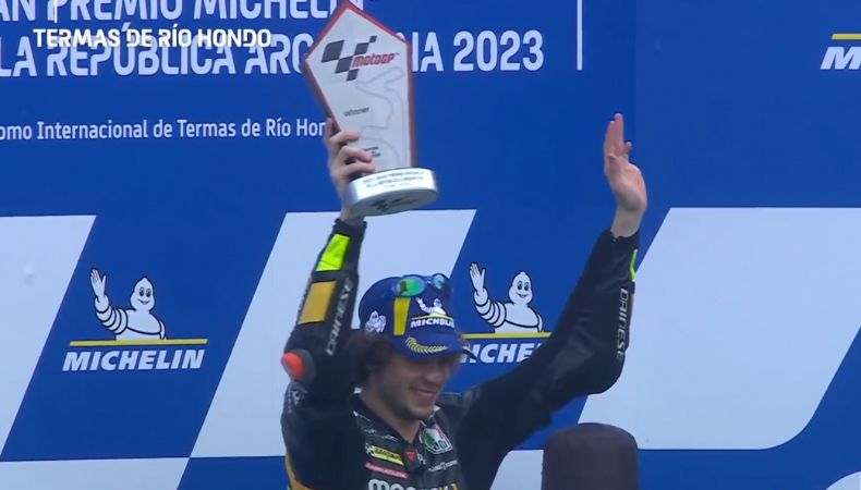El podio, disputado en el circuito de Termas de Río Hondo, lo completaron Johann Zarco en el segundo lugar y Alex Márquez como tercero.