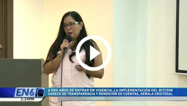 La organización no gubernamental Cristosal hizo la presentación del informe «El Salvador y el Bitcoin: experimento fallido en transparencia y rendición de cuentas».