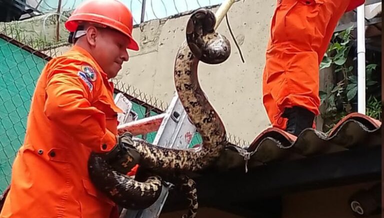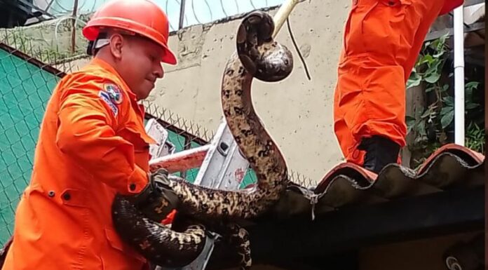 Elementos de Cuerpo de Bomberos capturaron a una serpiente de gran tamaño que fue encontrada en una vivienda de la residencial Ambrogi, colonia Escalón, San Salvador. Informaron que se pudo atrapar al reptil sin ningún problema, para retirarlo del lugar. Esto causó un gran susto a los habitantes del hogar, quienes actuaron oportunamente al informar la aparición del animal. Según testigos, esto sucedió el pasado jueves 28 de septiembre.