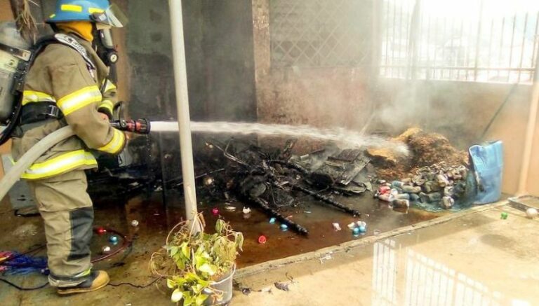 Cuerpo Bomberos extinguió un incendio generado en una vivienda ubicada en la residencial Los Girasoles, en el municipio de Santa Tecla, departamento de La Libertad.