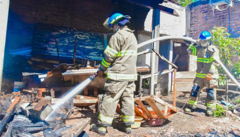 Esta tarde, elementos del Cuerpo de Bomberos extinguió un incendio en acumulación de leña dentro de una vivienda en la avenida 14 de julio, barrio San Antonio, Sensuntepeque, Cabañas. Desplegó esfuerzos para refrescar la zona afectada, detener el avance del fuego y prevenir daños en las estructuras cercanas al lugar.