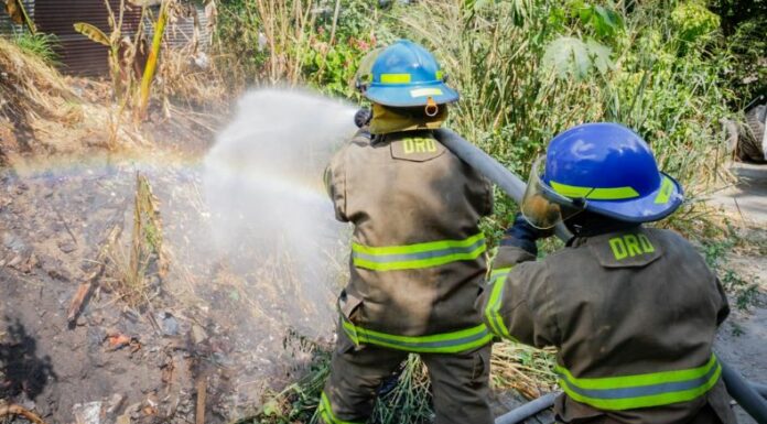 En las últimas horas, se han sofocado distintos incendios de maleza seca. Elementos del Cuerpo de Bomberos realizan trabajos para liquidar un incendio en terreno, ubicado en la colonia San Andrés, calle principal, San Martín, San Salvador. Al llegar al lugar, refrescaron la zona afectada para detener avance del fuego y prevenir daños en estructuras cercanas.