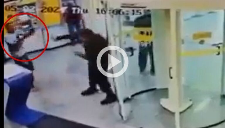 Las imágenes de las cámaras de seguridad del banco, capturaron el instante en que el menor disparó al guardia en Bauru, Sao Paulo.