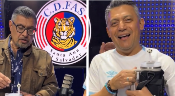 Alex llegó con su camiseta de Alianza a Tiro Libre Podcast, mientras que Bundio molestaba al presentador por la reciente eliminación del cuadro albo ante el Isidro Metapán.