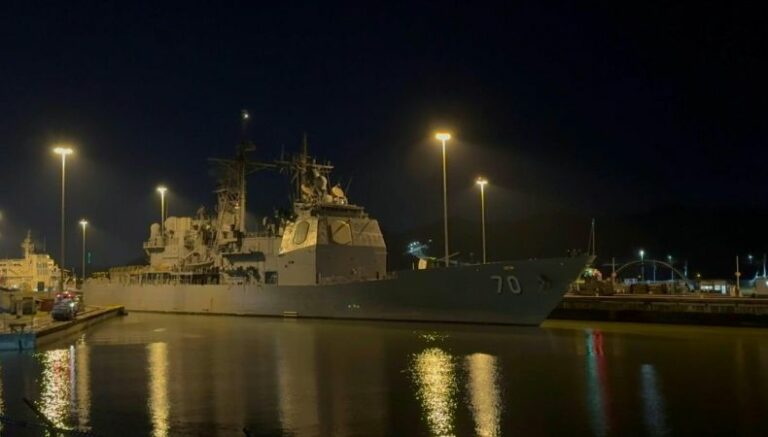 El buque lanzamisiles estadounidense USS Lake Erie ingresó anoche al Canal de Panamá desde el Pacífico rumbo al Caribe, en medio de un despliegue naval de Washington cerca de las costas de Venezuela.