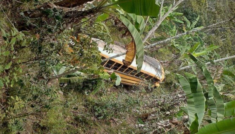 Según información preliminar, el conductor del bus perdió el control de la unidad presuntamente por desperfectos mecánicos, ocasionando que se saliera de la vía y cayó en un cafetal de unos 50 metros de profundidad.