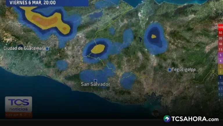 Mientras que para la noche, se esperan precipitaciones en la zona central y occidental, con énfasis en sectores de los departamentos de Santa Ana, San Salvador y La Libertad, movilizándose hacia el resto de la zona occidental.