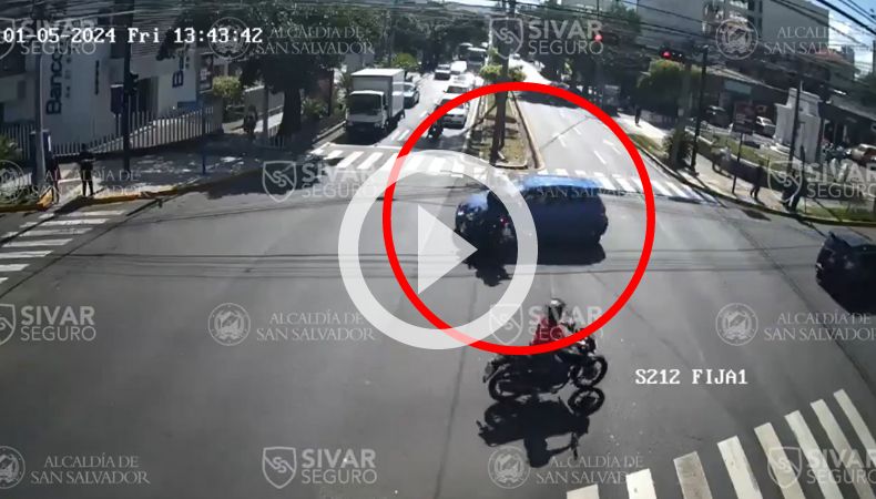 Este día se registró un accidente de tránsito en la Alameda Manuel Enrique Araujo y la avenida Olímpica, en San Salvador. Las cámaras del Sistema SívarSeguro captaron la imprudencia que cometió un motociclista, quien terminó impactando además con un vehículo, dejando resultado a él y su acompañante resultaron lesionados.