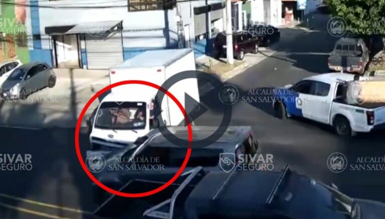 En el video se observa cuando el camión intenta realizar un giro, pero un vehículo aparece repentinamente y termina impactando en la parte delantera del camión. De acuerdo con la publicación de la cuenta de la Gerencia de Prensa y Redacción de la Alcaldía de San Salvador, el choque se generó por el irrespeto a las normas viales.