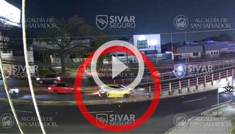 En horas de la noche del martes 19 de diciembre se registró un accidente de tránsito sobre el paso a desnivel que conecta el bulevar Los Próceres y la 49 avenida Sur, en San Salvador, el cual fue captado por una cámara de la alcaldía de San Salvador.