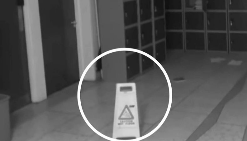Unos segundos después, comienza la actividad en los casilleros, hasta el punto que una señal de advertencia en el piso es removida con dureza.