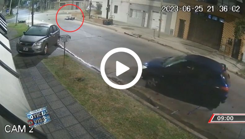 Un video de una cámara de seguridad captó un trágico momento, en el que un motociclista y un carro particular colisionan fuertemente en una cruz calle.
