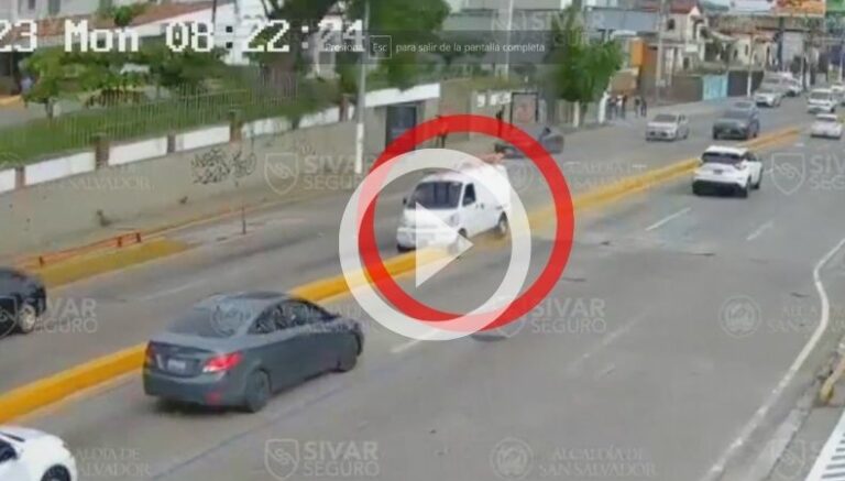 Un nuevo accidente de tránsito fue captado por las cámaras de seguridad de la Alcaldía de San Salvador. El percance vial se registró en la 49 avenida Sur, San Salvador. En el video, se observa como un microbús tipo panel viene en marcha y, de un momento a otro, empieza a perder el control hasta quedar encima de los separadores de la vía.