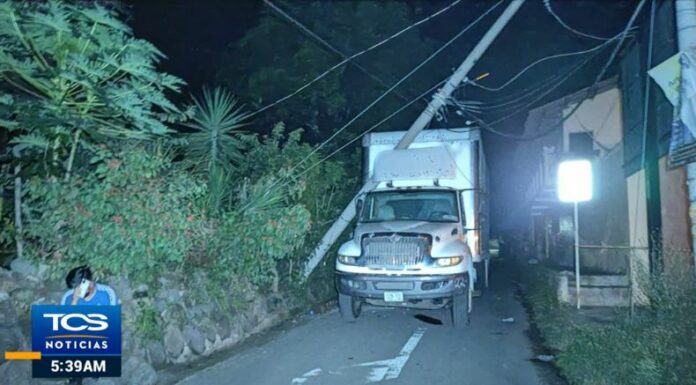 En horas de la noche de ayer, 8 de noviembre, un camión se pasó llevando cables de alta tensión y tiró un poste del tendido eléctrico en la 6ª calle Oriente de Zacatecoluca.