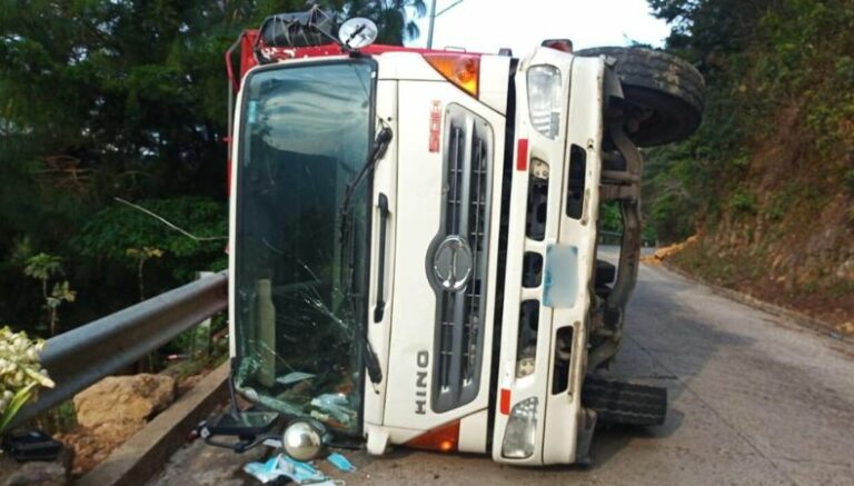 A través de la cuenta X, la PNC reportó un camión volcado en la calle del cantón Las Pilas en San Ignacio, Chalatenango. Según las investigaciones preliminares, el incidente sucedió por desperfectos mecánicos. Solo se reportan daños materiales.
