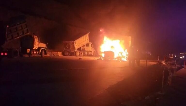Una rastra se incendió esta madrugada en el kilómetro 16 de la carretera Los Chorros, lo que provocó el cierre total del paso vehicular en ambos sentidos.