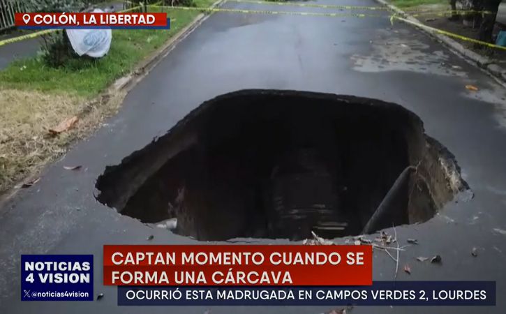 Las fuertes lluvias que azotaron en el país, en las últimas horas, han provocado varios incidentes, entre los cuales destaca la formación de una cárcava en la urbanización Campos Verdes 2, Colón, La Libertad.