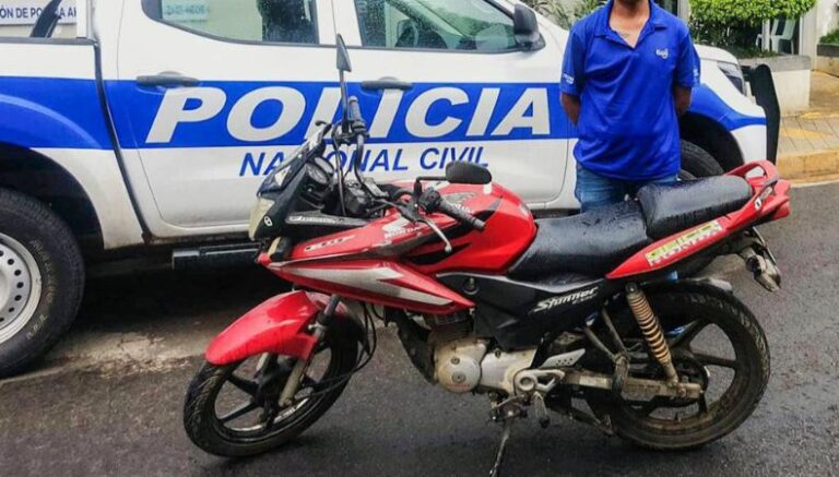 Por medio de la cuenta de X, la PNC reportó la captura de un hombre acusado de hurtar una motocicleta esta tarde en el centro del departamento de Ahuachapán. El hombre se identificó como Kevin Omar Pérez Guerra.