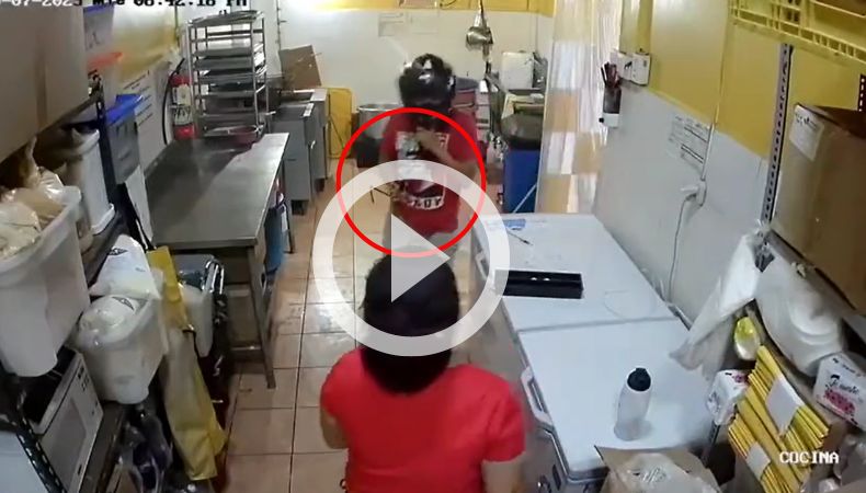 El hecho fue grabado por una cámara de seguridad instalada en el negocio. En ella se muestra el momento exacto en que el hombre entra al local hasta llegar a la cocina y caja donde guardan el dinero.