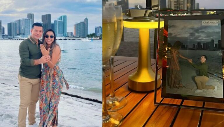 El momento se originó frente a la playa, cuando Carlos, de rodillas y con un anillo en mano, preguntó a su ahora futura esposa, si deseaba casarse con él. No obstante, la respuesta fue obvia y ella, respondió que «sí».