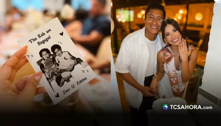 Para la ocasión, la Fátima llevaba un vestido blanco y una banda rosada con la frase “Futura novia”, además de una pequeña diadema que dice “Novia”. En una de las imágenes levanta su mano para mostrar el anillo de compromiso mientras sonríe a la cámara, mientras Emerson la abraza.