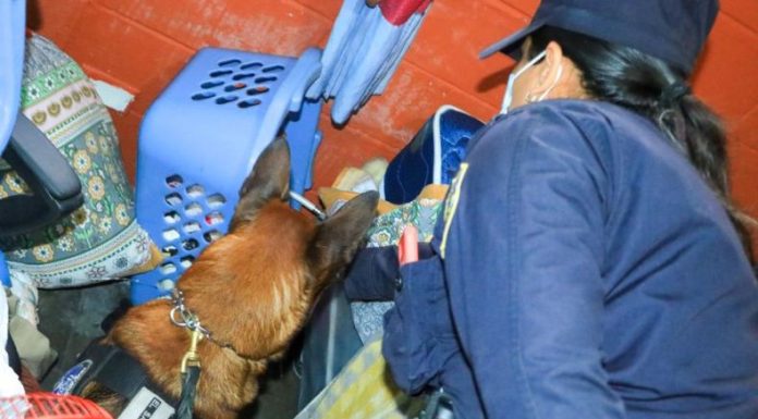 Las autoridades realizan patrullajes constantes y operativos de intervención rápida. Este día, los agentes caninos han localizado porciones de marihuana al interior de una vivienda.