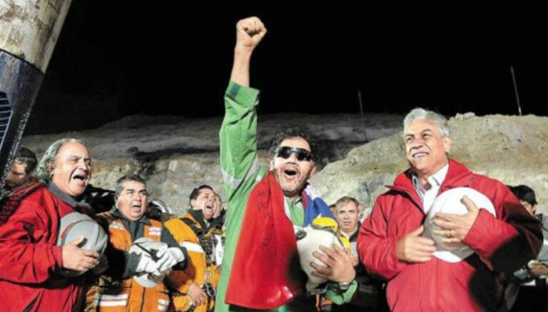 Los 33 mineros permanecieron 69 días encerrados a 700 metros de profundidad en un yacimiento en el desierto de Atacama. El derrumbe ocurrió el 5 de agosto del 2010, cuando una roca bloqueó el ingreso de la mina, y fueron rescatados el 13 de octubre a través de la cápsula Fénix, que los extrajo uno por uno.