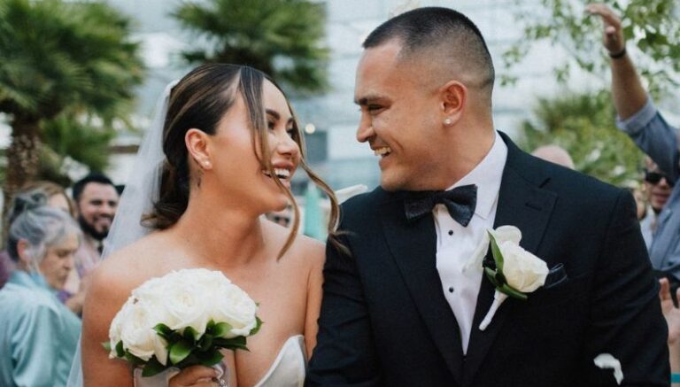 Asimismo, al pie de las fotografías destacó una descripción alusiva a su emoción y felicidad que siente de haber unido su vida con su amado cónyuge. «¡Hasta el infinito y más allá! 💍 Gracias Dios», destacó. Del mismo modo, la hermosa novia lució un especular vestido de color blanco en corte sirena, mientras que el novio utilizó un smoking negro muy elegante. Como consecuencia, en las postales se aprecia que se llevó a cabo en un lujoso hotel en Las Vegas.