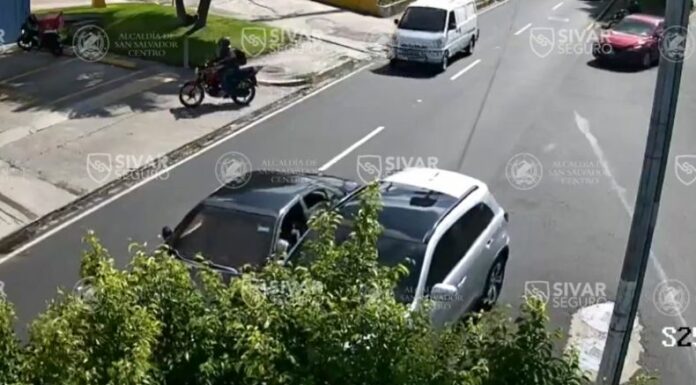 Este día, nuevamente, el sistema de videovigilancia de Sivar Seguro, de la Alcaldía de San Salvador Centro, capturó el momento en el que se provocó un choque de leve intensidad entre dos vehículos.